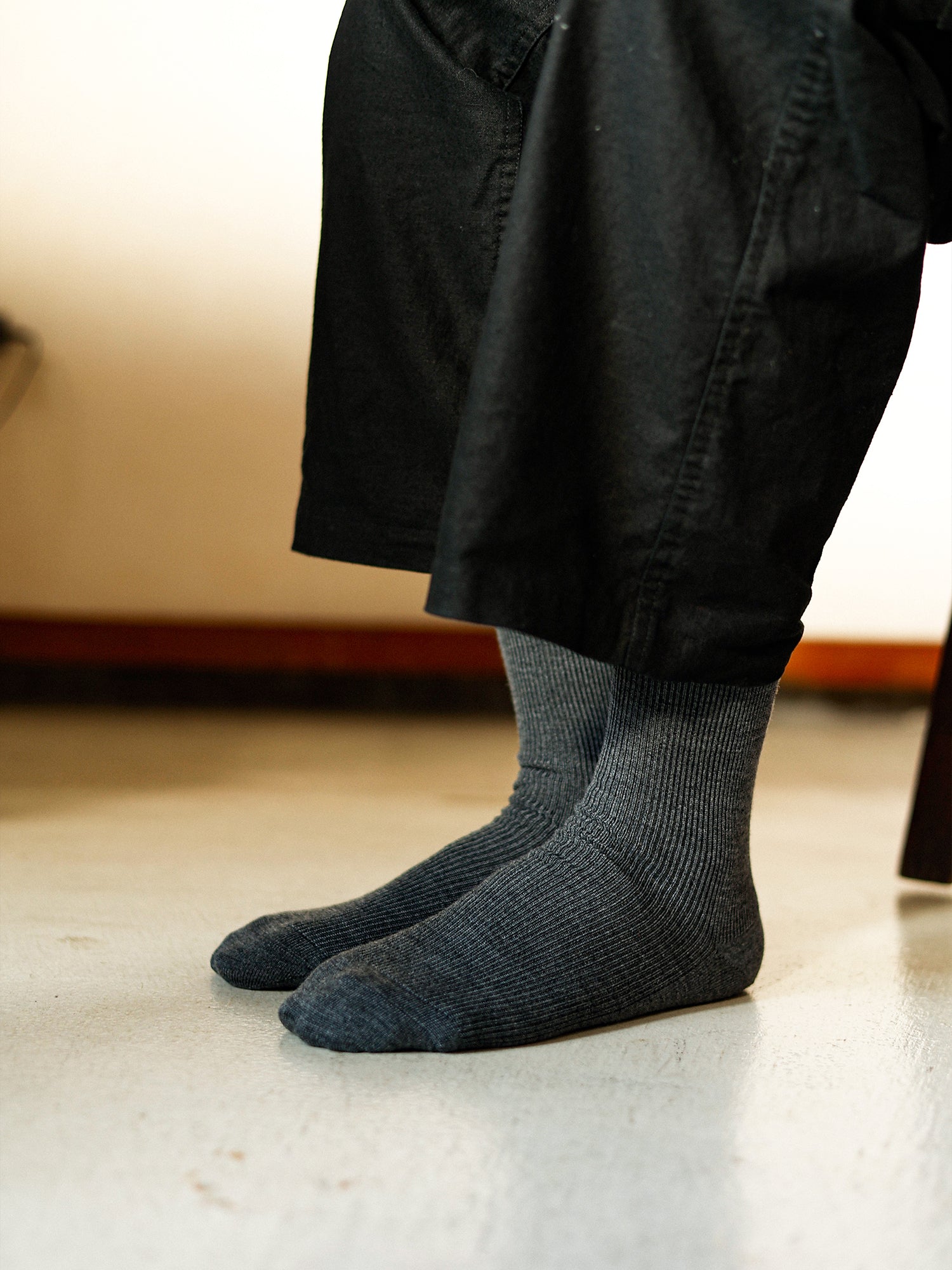 These simple 1x1 ribbed socks are perfect for those who don't want to wear thick socks in winter but still want to keep their feet warm.
