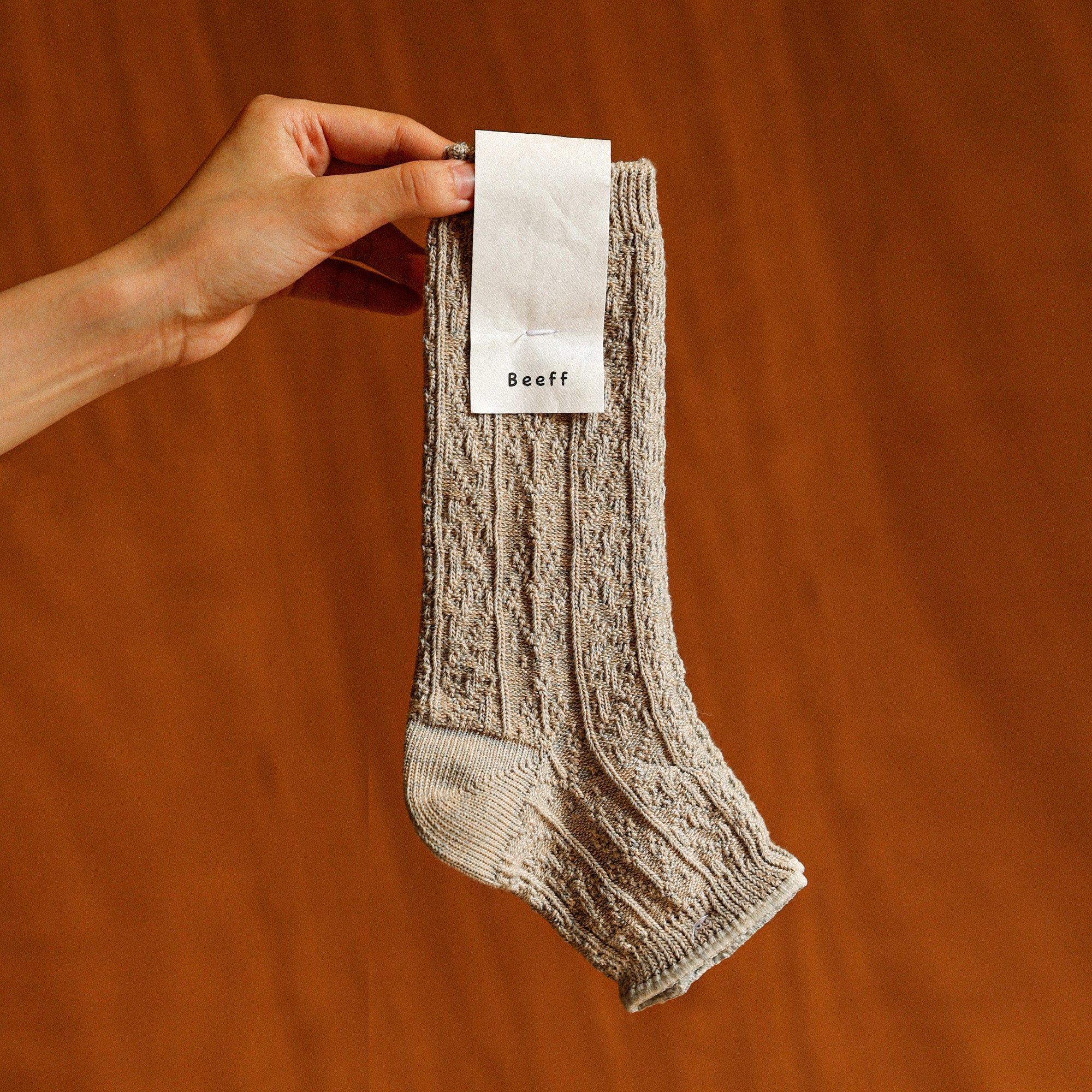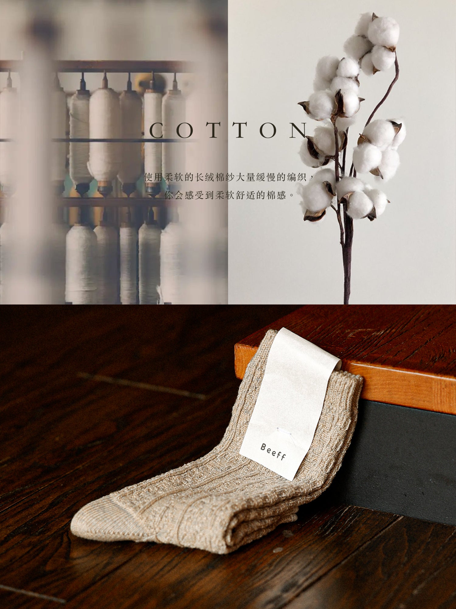 It's so cool to show your toes! We use old-fashioned knitting machines, all-natural cotton yarn and dyes, and the gentle knit patterns will make you feel happy when you wear them.