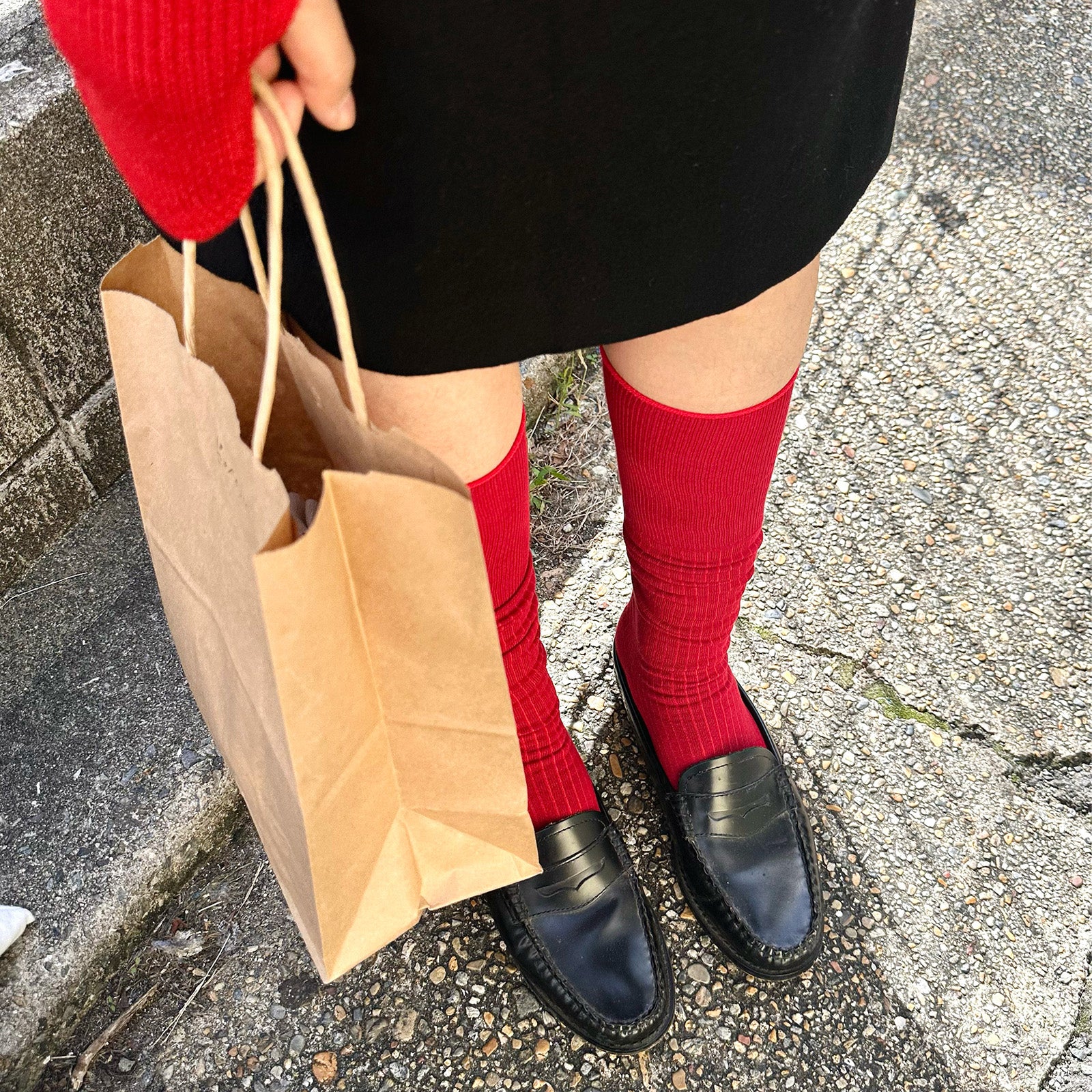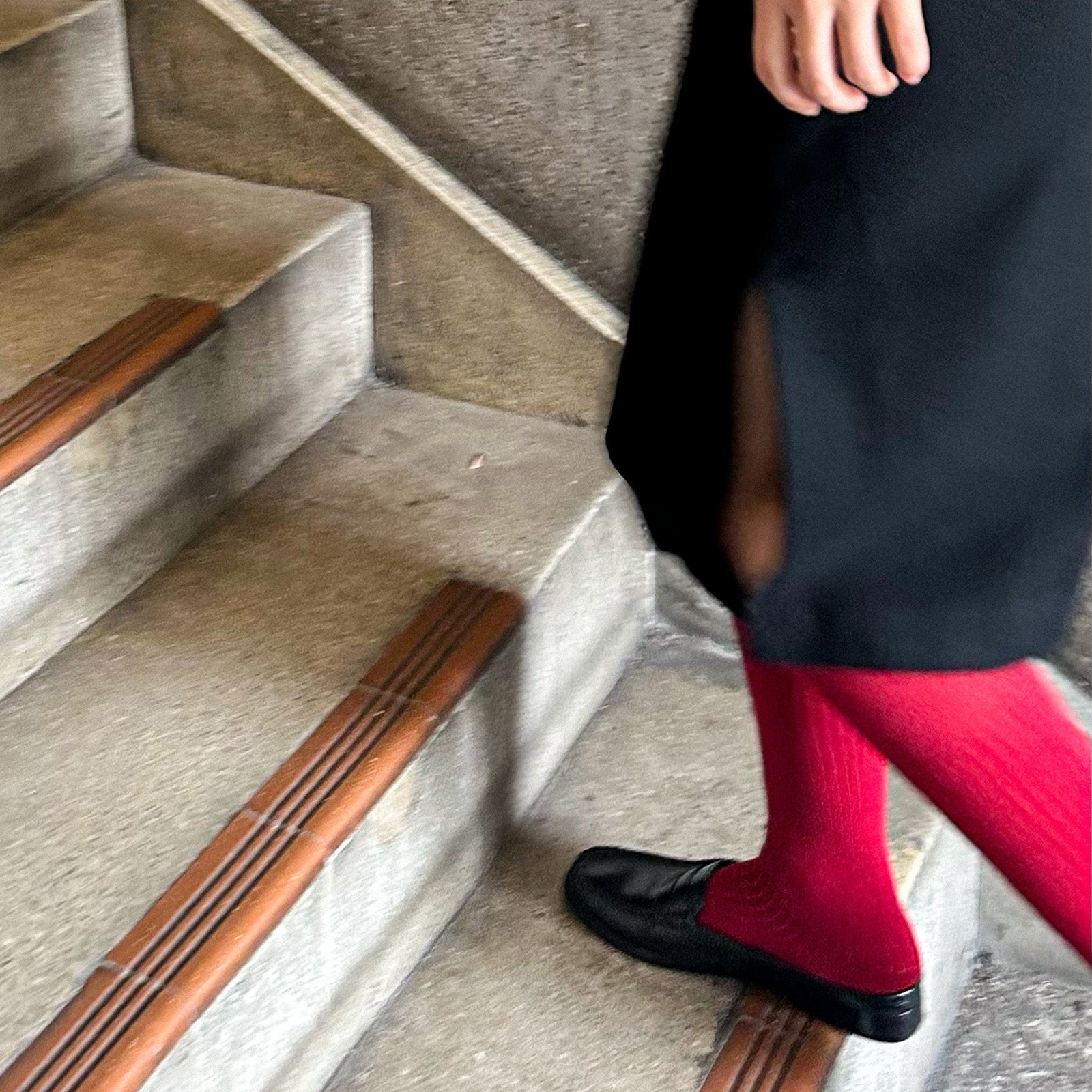 The hand-linked seamless toe gives a smooth, irritation-free finish, while the classic solid red design adds a pop of color that pairs beautifully with skirts, dresses, shorts, or boots. Perfect for daily outfits, work, travel, or casual looks.